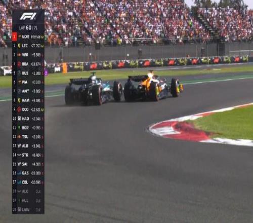 第一圈:首圈后诺里斯顺利领跑,勒克莱尔第二,汉密尔顿第三,维斯塔潘上到P4,皮亚斯特里落到P9