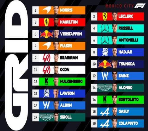 北京时间10月27日,F1墨西哥大奖赛正赛结束。诺里斯杆位夺冠,勒克莱尔第2,维斯塔潘第3,贝尔曼第4,皮亚斯特里第5,安东内利第6,拉塞尔第7,汉密尔顿第8,奥康第9,博托莱托第10。