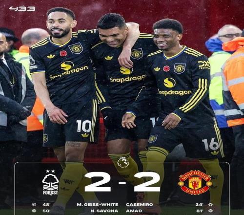 全场比赛结束,诺丁汉森林主场2-2战平曼联,拿下保级途中的重要1分,10轮积6分位列英超第18。