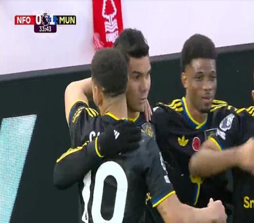 来到第34分钟,B费开出角球,卡塞米罗头球破门,曼联打破僵局,0-1!