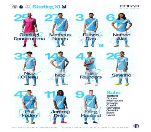 曼城首发:哈兰德出战英超 10-18 20:48英超第8轮,曼城主场迎战埃弗顿,赛前曼城首发阵容已经出炉,具体名单如下: 曼城首发:唐纳鲁马 / 努内斯、鲁本·迪亚斯、阿克、奥赖利 / 尼科·